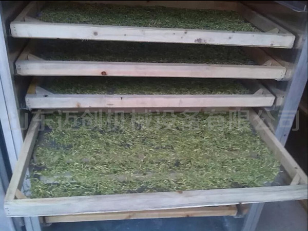 4、熱風(fēng)輸送方式:循環(huán)風(fēng)機(jī)將熱風(fēng)送入熱風(fēng)通道,再通過托盤架上的小孔進(jìn)入物料室,采用這種左右兩側(cè)送風(fēng)方式,使烘干更加均勻。